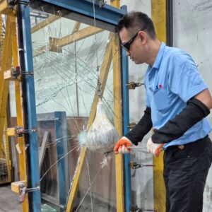 We conduct fragmentation testing for heat-strengthened and fully toughened glass in accordance with international standards. This test evaluates the breakage pattern and fragment size to confirm compliance with safety glazing requirements.